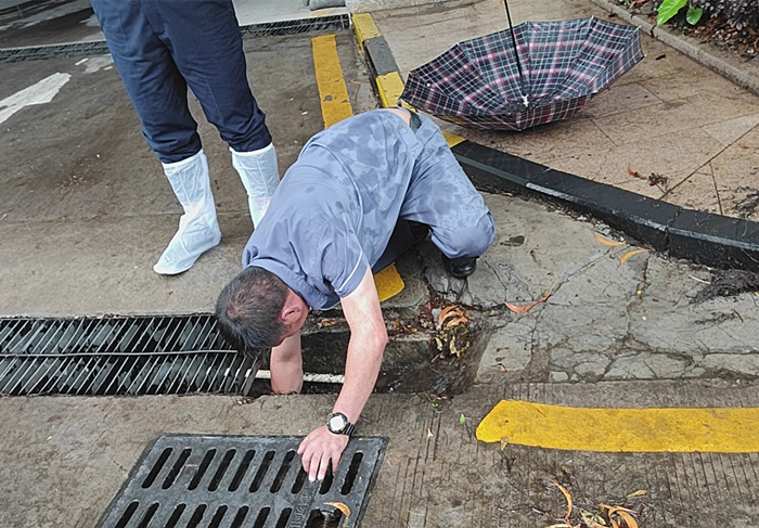 深圳迎今年最強持續(xù)性強降水,鴻運物業(yè)自5月9日收到氣象預(yù)警后,立即全面開展暴風(fēng)雨防御準(zhǔn)備和安全隱患排查工作。各部門協(xié)同清理排水口、疏通排水溝、檢查排水泵,保障排水系統(tǒng)暢通無阻;對防疫帳篷、防疫宣傳立牌等進行加固;排查居民陽臺,通知住戶清理陽臺花盆等雜物;在地下停車場布置防汛擋水沙袋;在居民微信群中發(fā)布天氣預(yù)警,叮囑居民注意安全;在各樓棟大廳放置“小心地滑”的標(biāo)識……鴻運物業(yè)總部抽檢各項目防汛情況,強調(diào)各物業(yè)服務(wù)中心要時刻保持警惕,加強巡查防控,如有特殊情況第一時間向總部匯報,切實保障居民的生命財產(chǎn)安全。 在此,鴻運物業(yè)提醒廣大居民,暴雨期間盡量不要外出,如需外出應(yīng)繞開河道、低洼易澇點、配電箱柜等,避開危險邊坡、擋土墻等危險區(qū)域。開車應(yīng)減速慢行,不穿越出現(xiàn)水浸的道路,汽車在低洼處熄火時,千萬不要在車上等候,應(yīng)下車到高處等待救援。
