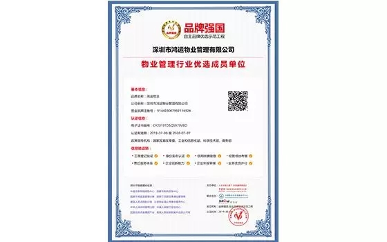 ?????? 鴻運(yùn)物業(yè)經(jīng)過(guò)資質(zhì)審核、輿情監(jiān)控等層層篩選,成功入選為品牌強(qiáng)國(guó)示范工程物業(yè)管理行業(yè)優(yōu)選成員單位,企業(yè)信息錄入品牌強(qiáng)國(guó)示范工程數(shù)據(jù)庫(kù),在國(guó)家級(jí)平臺(tái)向公眾展示品牌形象。