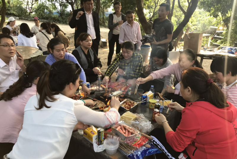 ?????? 旺盛的爐火和豐富的燒烤食材,讓人迫不及待地?cái)]起袖子,展示手藝。幽靜的山林美景,給整個(gè)燒烤增添了更加愉悅的氣氛。手藝好的負(fù)責(zé)烤串,不會(huì)拷的就只能負(fù)責(zé)吃了。五花肉、羊肉、魷魚(yú)、肉丸、紅薯……吃的不亦樂(lè)乎??上У氖?,烤串外行居多,爬山爬得餓了的同事們饑不擇食,管他糊沒(méi)糊,全都塞進(jìn)肚子里。還誕生了許多黑暗料理,如炭黑紅薯、半生的魷魚(yú)、咸死人不償命的羊肉串……但正是這些小插曲,給燒烤活動(dòng)貢獻(xiàn)了許多笑料。