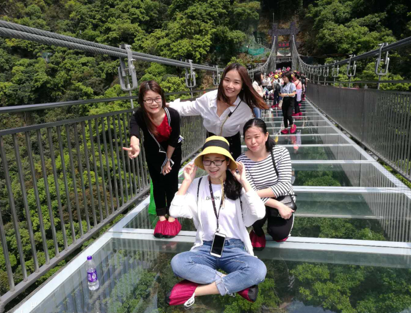 ?????? 我們于29日中午抵達(dá)清遠(yuǎn),品味地道的農(nóng)家菜,這其中當(dāng)然少不了遠(yuǎn)近聞名的清遠(yuǎn)雞和北江魚(yú)了,僅加些許鹽清蒸,食材的清香在口中回旋。體力滿格后,我們前往天子山,大家充分發(fā)揮團(tuán)隊(duì)精神,結(jié)伴而行,互相幫扶,途徑128米高的天后瀑布,沖刺登頂,最后從山頂?shù)牟AЩ萆匣缴侥_,大家一個(gè)個(gè)“返老還童”,笑得像個(gè)孩子。晚上入住溫泉酒店,在溫暖舒適的溫泉中洗去疲憊。