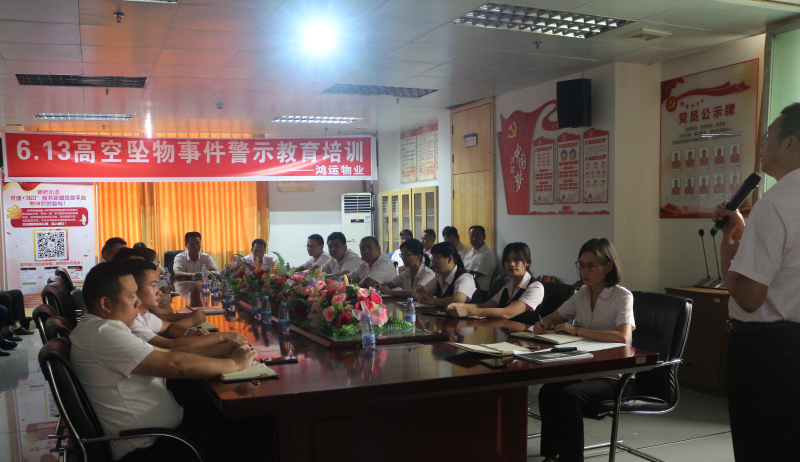 ?????? 6月19日下午,鴻運(yùn)物業(yè)舉辦“6.13高空墜物事件警示教育培訓(xùn)”活動(dòng),各管理處主任、部門主管和隊(duì)長悉數(shù)到場,緬懷去世男童,并深刻吸取御景華城玻璃窗墜落事故的教訓(xùn),引以為戒,強(qiáng)化自身責(zé)任擔(dān)當(dāng),牢筑物業(yè)安全防線。