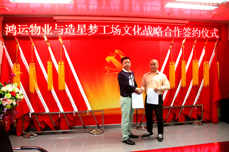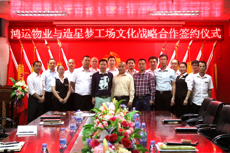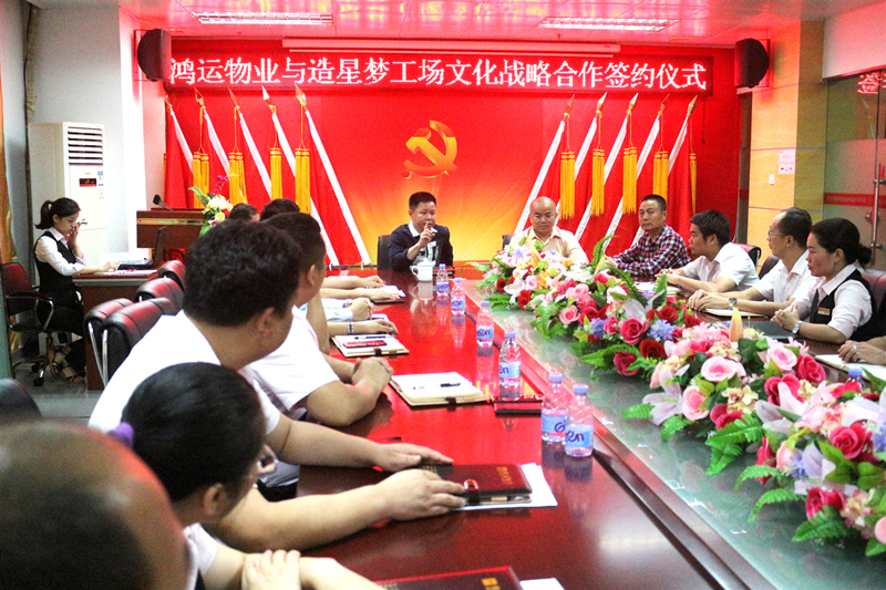 ????? 雙方就惠州物業(yè)項(xiàng)目、安保項(xiàng)目、房屋租售項(xiàng)目三個(gè)方面達(dá)成合作共識(shí),并現(xiàn)場(chǎng)簽署戰(zhàn)略合作協(xié)議。我司向造星夢(mèng)工場(chǎng)盧總、劉總依次介紹鴻運(yùn)高層員工,然后共敘佳話,同繪愿景。