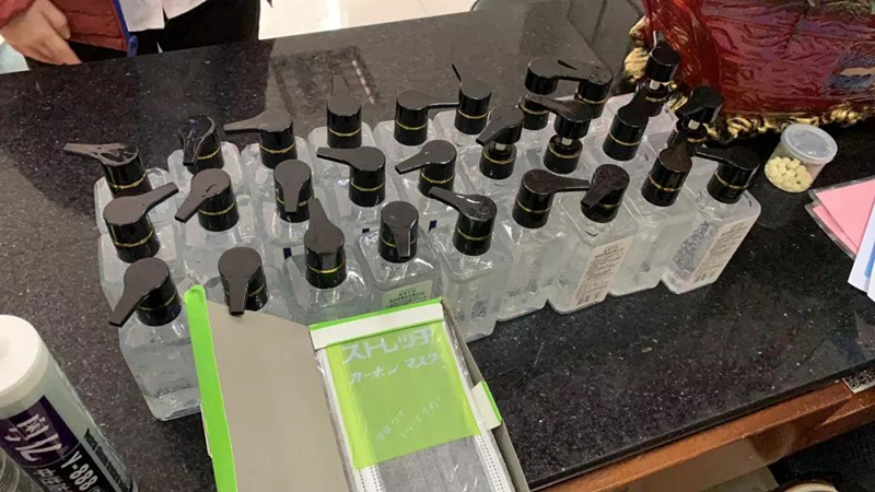 ?????? 我們已將收到的免洗洗手液放置于鴻德園小區(qū)電梯處,供小區(qū)居民使用;一次性醫(yī)用口罩已入庫,后續(xù)將發(fā)放給一線保安員、客服工作使用;酒精噴霧放置于泰富華庭小區(qū)防控檢疫點(diǎn),供檢疫點(diǎn)的臨時(shí)消毒使用。