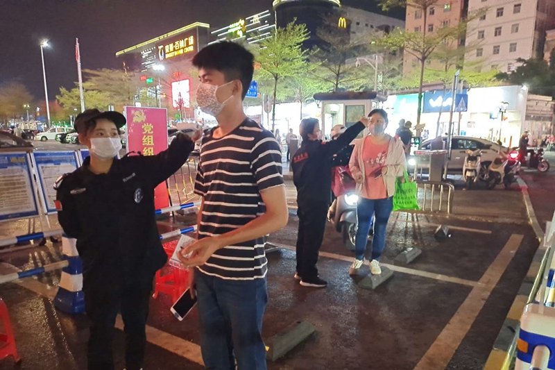 ????????史軍華同志是此次采訪中讓我印象最為深刻一個。她和胡容瑗、韓安連、宋三風四名女保安,兩兩一組,負責沙頭一區(qū)1號崗的白班和夜班。沙頭一區(qū)1號崗是沙頭舊村人流量最大的出入口,城中村人員較雜,有不配合測量體溫的,有硬要進來走親戚的,也有不順心就罵罵咧咧的。當我問道:“聽說你們女保安員中有勸居民戴口罩結果被罵哭的,你們是怎么緩解這種負面情緒的?”電話那頭的她突然哽咽著說道,她就是那個被罵哭的,接著哭了出來,但很快又調(diào)整好情緒,她說比起重災區(qū)的醫(yī)務人員,自己根本不算什么,其實大多數(shù)的居民還是很好的,不配合的只是個別,咬咬牙就過去了。她說自己的女兒之前也被困在重災區(qū),自己只是想在防疫工作中出一份力。