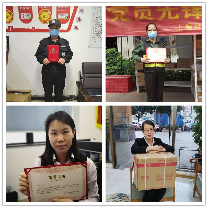 ?????? 根據(jù)征集到的材料,結合投票和領導評選,婦女節(jié)“最美戰(zhàn)疫逆行者”主題活動的獲獎名單出爐,前5名依次為:沙頭管理處保安史軍華、星悅豪庭管理處保安李冬梅、盛芳園管理處客服郭華容、麒麟花園管理處保安李鳳荷、總辦品質(zhì)部主管鄧亞蘭。公司已為獲獎員工發(fā)放榮譽證書,并根據(jù)個人需求購買和發(fā)放相應的獎品。同時,對每一位參與者,我們都贈送精美小禮品,感謝你們的積極參與!