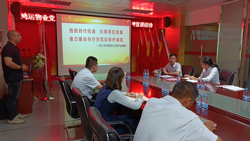 ? ? ? ?11月2日下午,區(qū)第七次黨代會(huì)宣講員童偉同志蒞臨鴻運(yùn)物業(yè),向支部黨員和公司員工,宣講寶安區(qū)第七次黨代會(huì)精神,重點(diǎn)講解了前海擴(kuò)區(qū),介紹了寶安區(qū)的六大成績、三大挑戰(zhàn)、四大機(jī)遇、五大跨越、六大任務(wù),號(hào)召黨員同志們鍛造“又專又硬”的能力和作風(fēng),為建設(shè)深圳先行示范區(qū)標(biāo)桿城區(qū)貢獻(xiàn)力量。會(huì)上,鴻運(yùn)物業(yè)黨支部書記陳文遠(yuǎn)同志和多名黨員分享學(xué)習(xí)心得,并多次以熱烈的掌聲感謝童偉同志帶來精彩的講解。