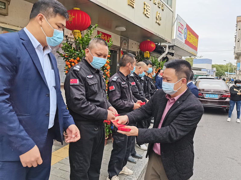 ? ? ? ?2月8日,鴻運(yùn)物業(yè)虎年開工啦!鴻運(yùn)物業(yè)總經(jīng)理陳喜祥攜公司高層,前往各物業(yè)服務(wù)中心,為鴻運(yùn)家人們送上開工利是,小小利是代表暖暖的祝福,代表對(duì)新的一年的美好期望,祝愿全體鴻運(yùn)人虎年利利是是、身體健康、工作順利、吉祥如意!