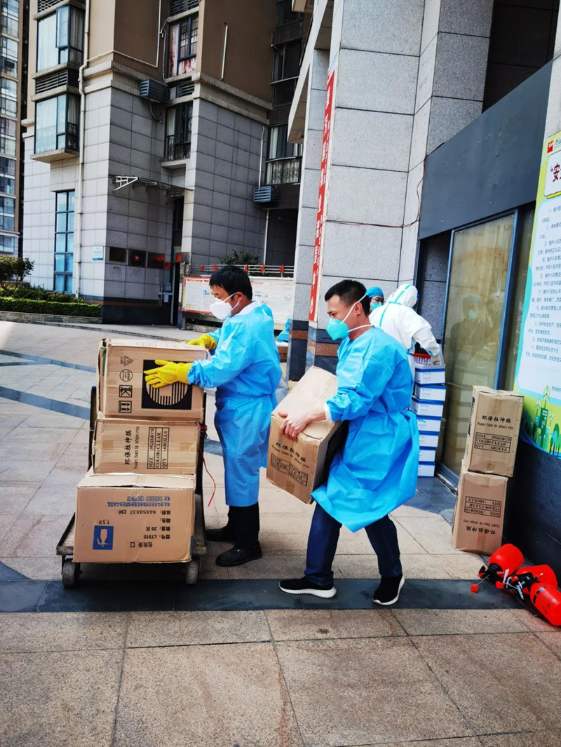 ? ? ? 在鴻運物業(yè)星悅豪庭物業(yè)服務(wù)中心,因總部所在大廈被封,他們臨時承擔起防疫物資轉(zhuǎn)存的任務(wù),為各兄弟項目提供有力支援。