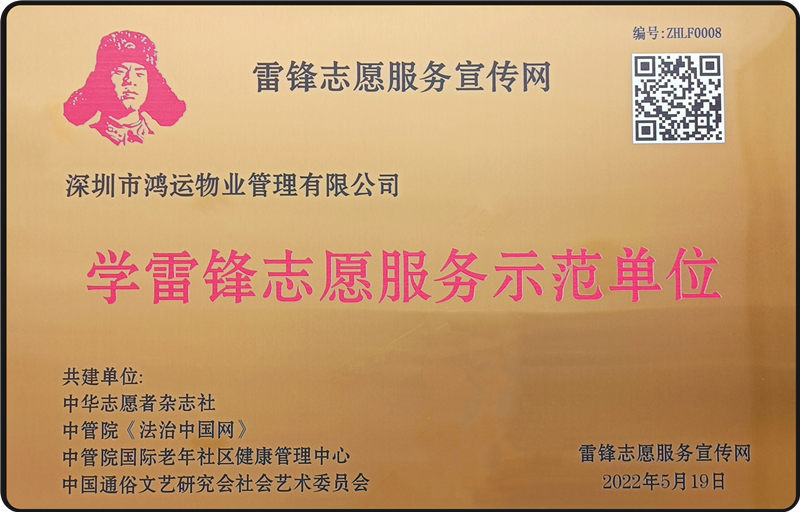 ? ? ? ?近日,鴻運(yùn)物業(yè)榮獲“學(xué)雷鋒志愿服務(wù)示范單位”的光榮稱號(hào),總經(jīng)理陳喜祥同志獲評(píng)2021年度志愿服務(wù)先進(jìn)義工,常務(wù)副總經(jīng)理麥紹康同志榮獲“學(xué)雷鋒志愿服務(wù)榜樣”的榮譽(yù)稱號(hào)。