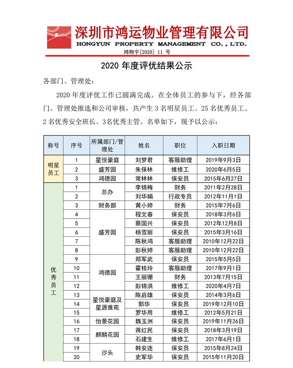 鴻運(yùn)物業(yè)2020年度評優(yōu)結(jié)果公示