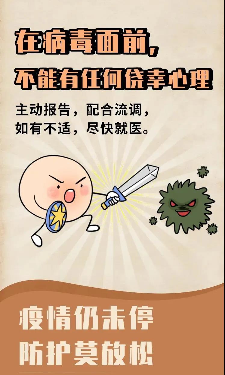 ? ? ? 全國疫情時有反復,新冠病毒頻繁變異,疫情防控不容松懈。請廣大居民務必嚴格遵守防疫規(guī)定,積極配合防疫工作,對自己負責、對身邊人負責、對共同家園負責,切實維護疫情防控大局,堅決鞏固抗疫成果!