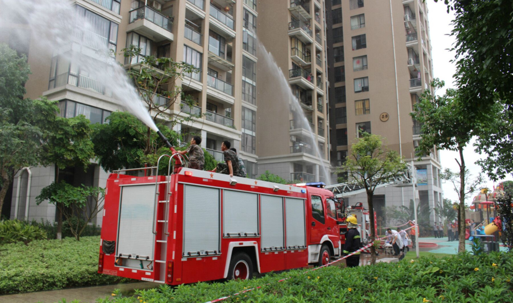 啟動(dòng)儀式中,黨員應(yīng)急隊(duì)伍現(xiàn)場(chǎng)聯(lián)合街道消防部門(mén)及萬(wàn)豐醫(yī)院舉行了高層小區(qū)消防應(yīng)急演練。首先,由小區(qū)消防控制室向現(xiàn)場(chǎng)指揮報(bào)告發(fā)現(xiàn)火警位置,指揮安排值班人員迅速到達(dá)火警區(qū)域核實(shí)情況,確認(rèn)火情緊急后,消控中心立即聯(lián)系火警119并啟動(dòng)應(yīng)急預(yù)案,拉響警報(bào)?,F(xiàn)場(chǎng)總指揮安排應(yīng)急隊(duì)各小組人員工作:滅火組打開(kāi)消防栓接好水帶現(xiàn)場(chǎng)進(jìn)行滅火;維護(hù)組切斷大樓主電源,啟動(dòng)備用電源,電梯迫降;警戒組到各路口進(jìn)行警戒和引導(dǎo)工作,指引消防車(chē)輛和救護(hù)車(chē)輛進(jìn)入作業(yè)區(qū)域;疏散組協(xié)助業(yè)主逃生;救護(hù)組組織人員到火災(zāi)現(xiàn)場(chǎng)救護(hù)傷員。雖然現(xiàn)場(chǎng)氣氛緊張,但各項(xiàng)工作有條不紊,最后現(xiàn)場(chǎng)人員向指揮臺(tái)匯報(bào)火情已完全撲滅,未造成人員傷亡。