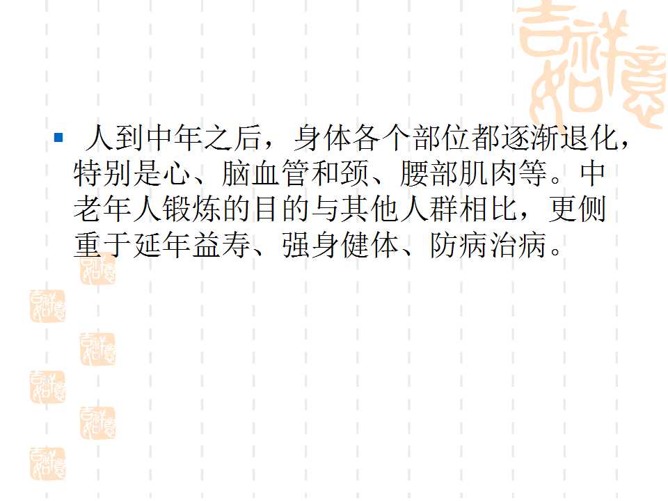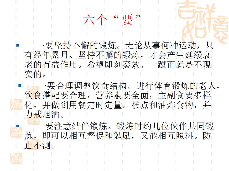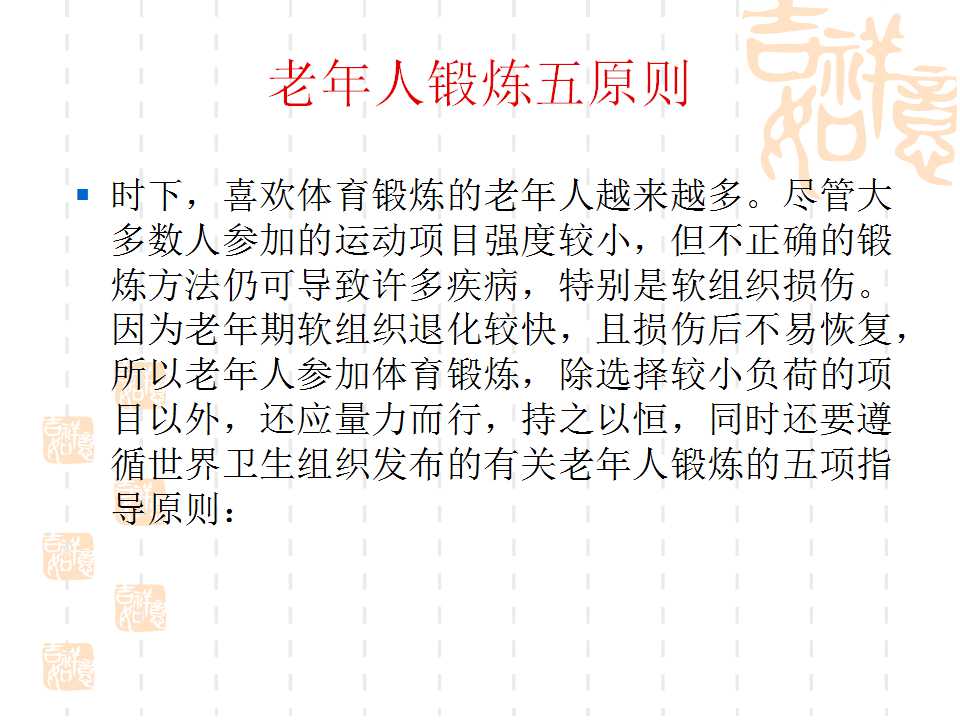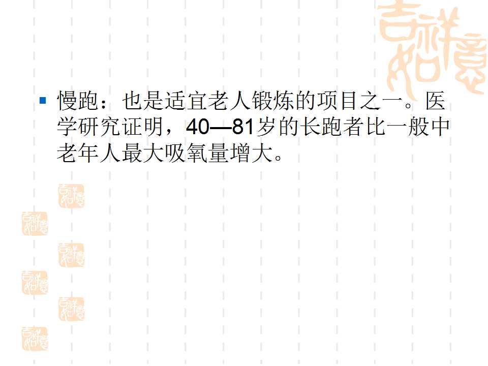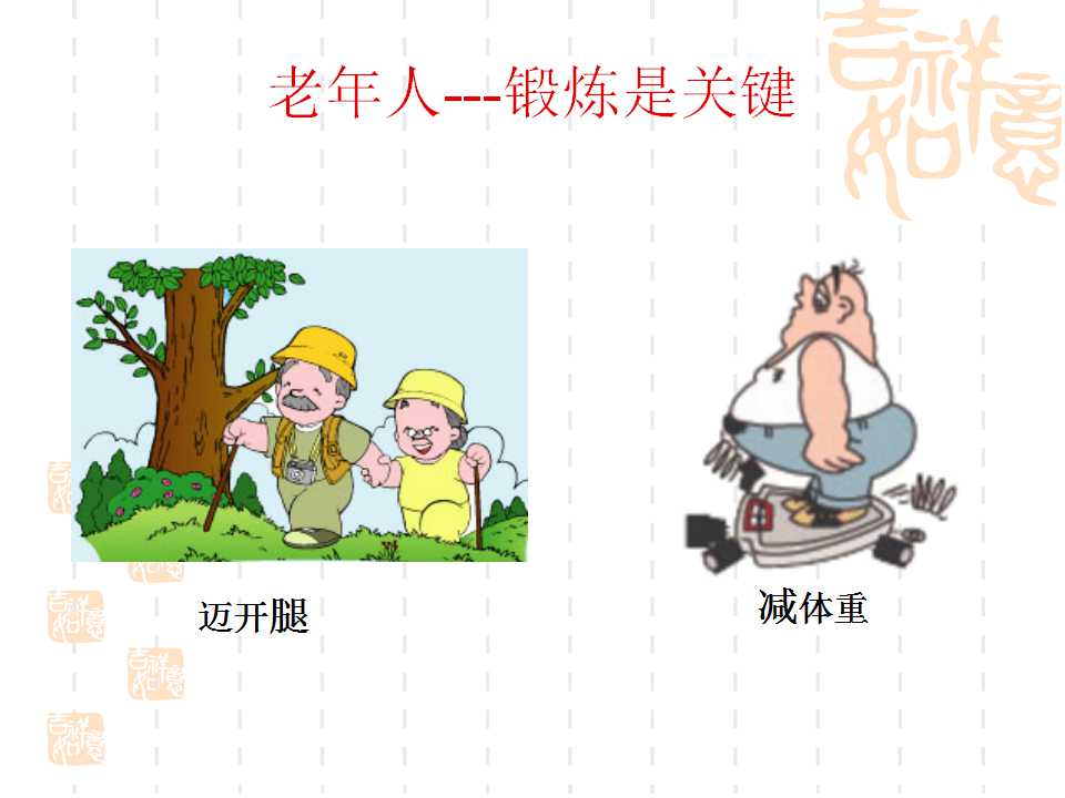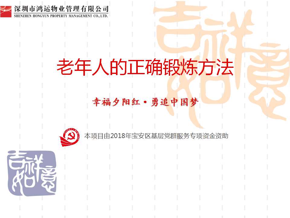 點(diǎn)擊下方鏈接,可進(jìn)入百度網(wǎng)盤(pán),下載“幸福夕陽(yáng)紅·勇追中國(guó)夢(mèng)”項(xiàng)目老人健身PPT課件。
