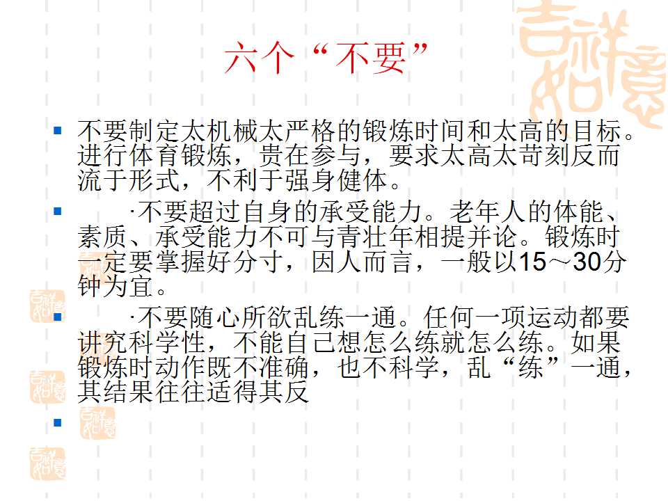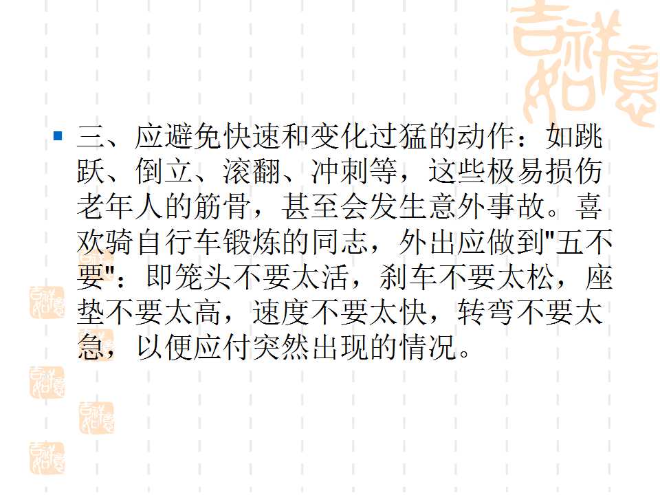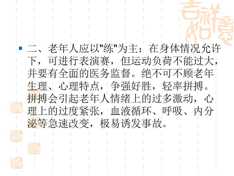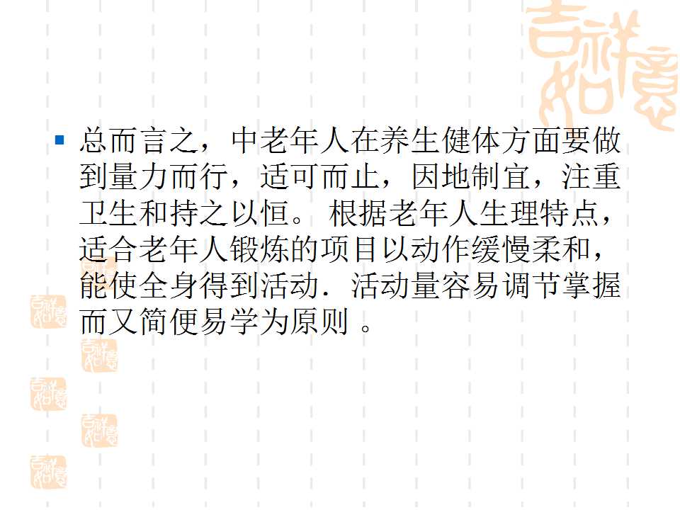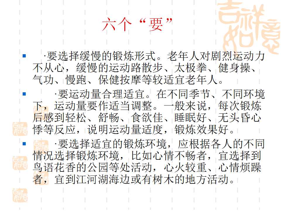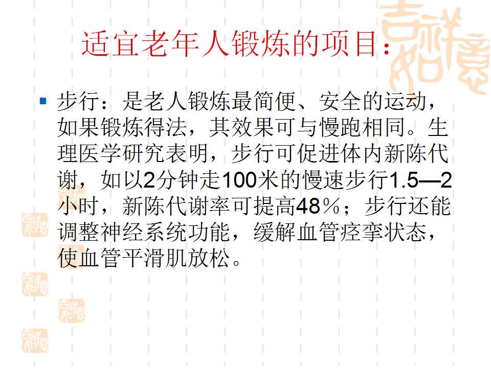 點(diǎn)擊下方鏈接,可進(jìn)入百度網(wǎng)盤(pán),下載“幸福夕陽(yáng)紅·勇追中國(guó)夢(mèng)”項(xiàng)目老人健身PPT課件。