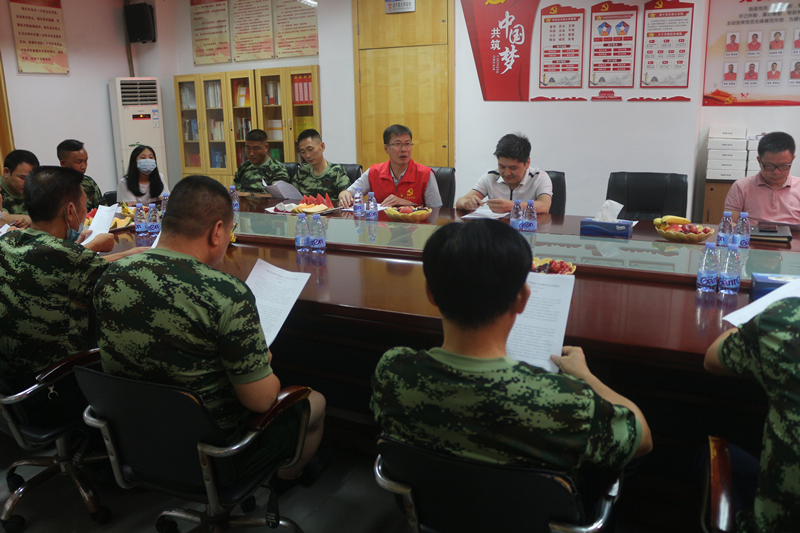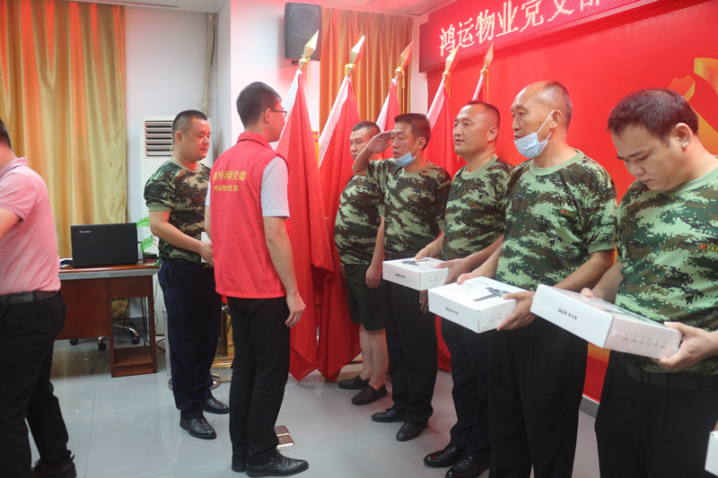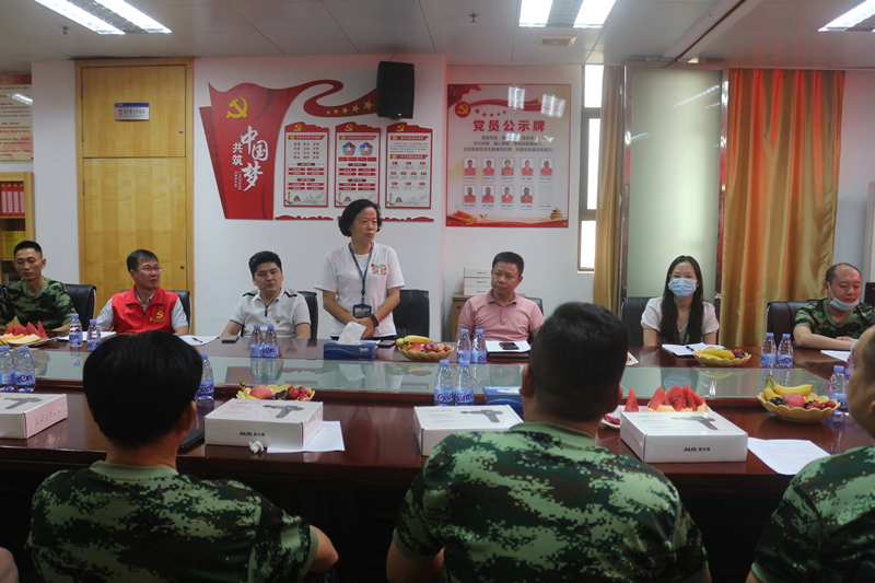 ? ? ? ?哪里有危險(xiǎn),哪里就有他們的身影,中國軍人如鋼鐵長城,守護(hù)萬家燈火,守護(hù)歲月靜好。即便退伍,他們?nèi)员3周娙孙L(fēng)采,以超高的紀(jì)律性和責(zé)任意識,在各行各業(yè)發(fā)揮中流砥柱作用。7月30日,八一建軍節(jié)來臨之際,鴻運(yùn)物業(yè)黨支部聯(lián)合公司,在新橋“兩新”組織黨委的大力支持下,舉辦“發(fā)揚(yáng)軍人硬作風(fēng)·立足崗位建新功”慶八一退伍軍人座談會,致敬退伍軍人,弘揚(yáng)優(yōu)良軍風(fēng)。新橋“兩新”組織黨委專職副書記吳玉芹同志、廣場黨總支書記李雪勇同志應(yīng)邀蒞臨指導(dǎo)。
